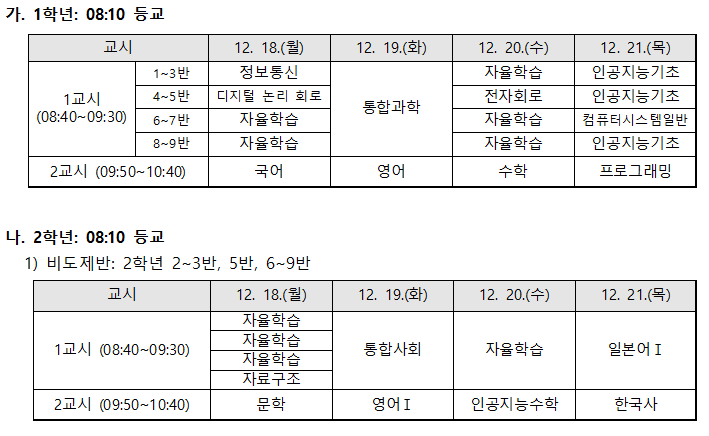 2차 지필평가 By admin | December 6, 2023 - 11:10 pm |December 12, 2023 Event date: December 18, 2023 - December 21, 2023Categories: 학업 Bookmark the permalink.